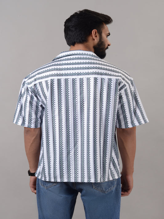 Men Green Cotton Blend Striped Spread Collar Half Sleeves Oversized Casual Shirt (SIZE -M,L,XL)